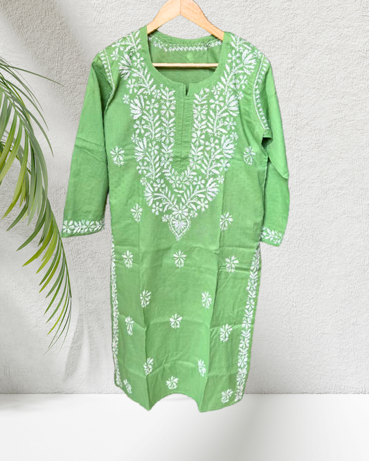 Green Cotton Chikanari Kurta