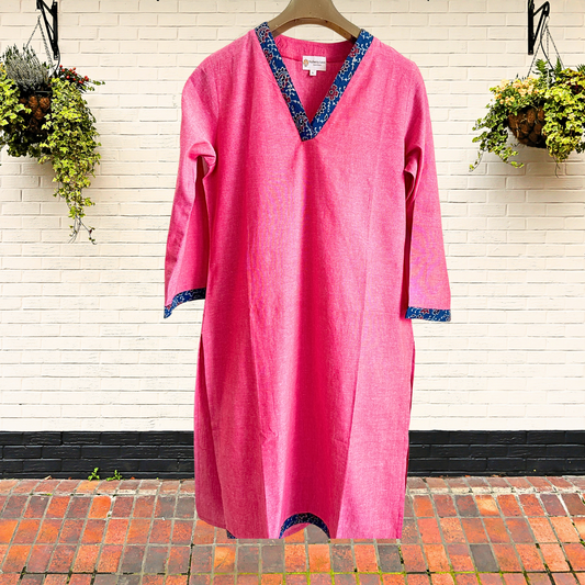Pink V-Neck South Cotton Straight Kurta