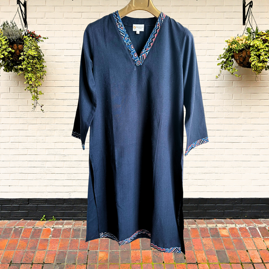 Black V-Neck South Cotton Straight Kurta