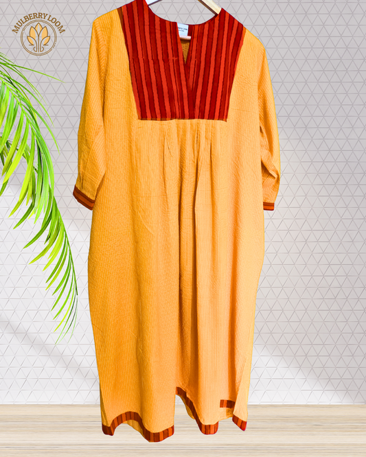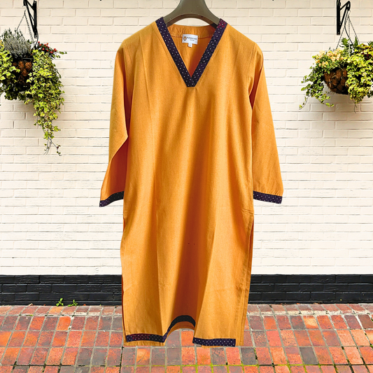 Orange V-Neck South Cotton Straight Kurta