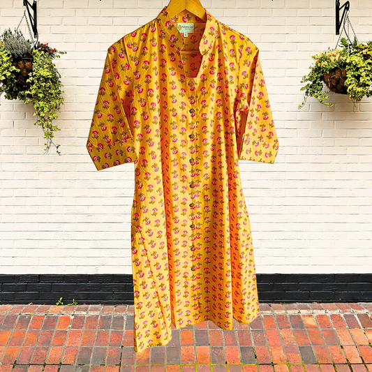 Exquisite Yellow and Red Hand Block Print Patch Kurta