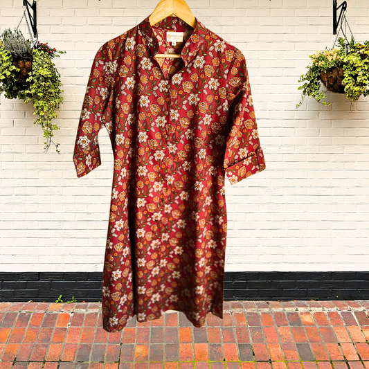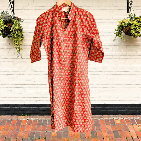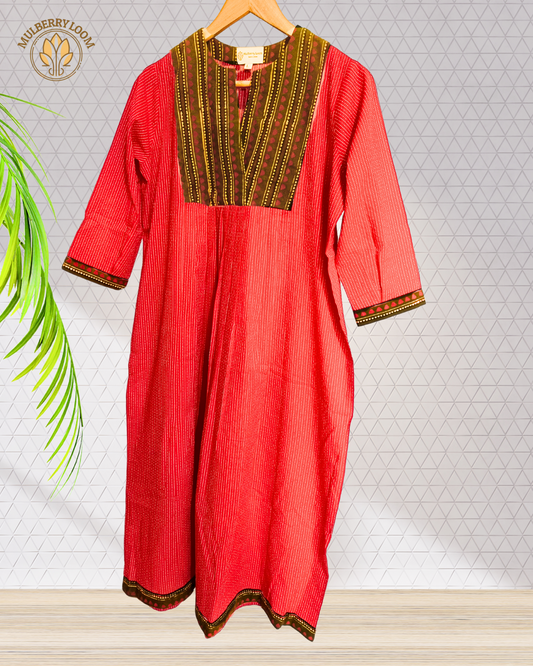 Exquisite Red and Dark Green Hand Block Print Patch Kurta