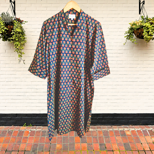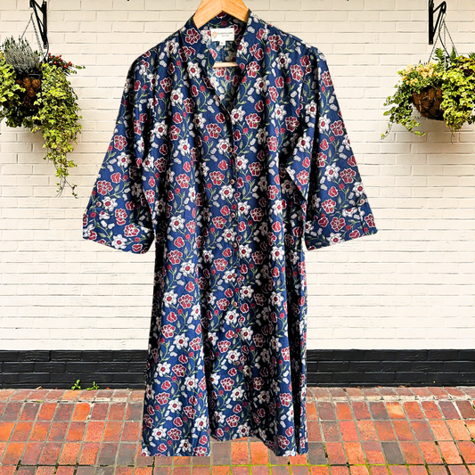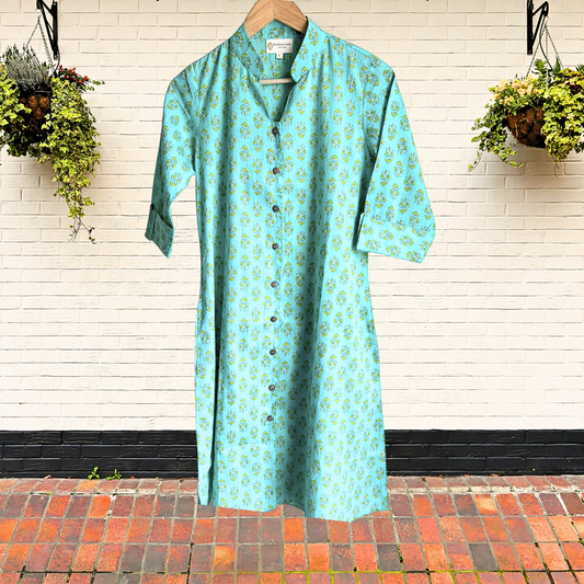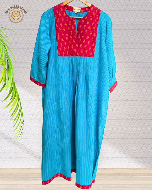 Exquisite Blue and Pink Hand Block Print Patch Kurta