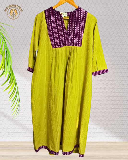 Exquisite Lime Green and Purple Hand Block Print Patch Kurta