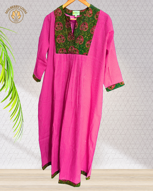 Exquisite Pink and Dark Green Hand Block Print Patch Kurta