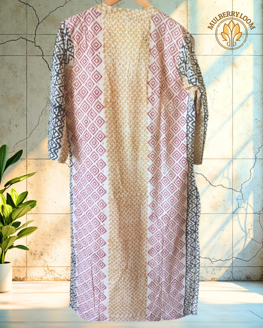 Beige Bliss Soft Mul Cotton Hand Block Print Kurta